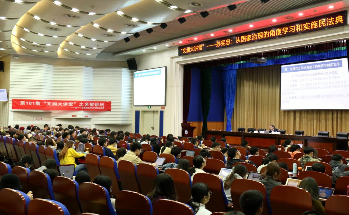 通讯员(邓瑜婕 蒋琼 张杰)11月13日晚,由中南财经政法大学研究生院、党委研究生工作部、中南财经政法大学研究生会主办,中南财经政法大学民商法学科、湖北省法学会法学教育研究会、中南财经政法大学法学院研究生会承办的第181期“文澜大讲堂”之名家讲坛在文泉楼学术报告厅举行。本次讲座以“从国家治理的角度学习和实施民法典”为主题,由中国社会科学院学部委员孙宪忠教授担任主讲人,法学院副院长张家勇教授担任主持人,众多法科学子到场聆听学习。