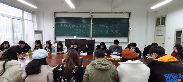 (通讯员 寿启明)2020年12月6日下午2点,《中南研语》编辑部“中共党史”学习交流会暨第28期审稿大会在文添楼104教室顺利开展。本次会议由常务副主编胡金叶和执行主编孔瑛共同主持,《中南研语》编辑部全体成员参加。