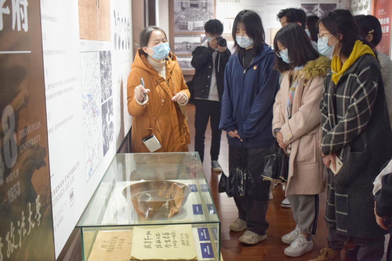 随后同学们紧跟讲解老师的脚步走进校史博物馆内部,沿途参观了学校发展历程、学科建设发展以及科研成果记录等,体验了电子翻书系统、电子签名系统等互动型的多媒体设备所带来的翻天覆地的变化。在对学校的创立阶段介绍时,讲解老师向同学们展现我校自创立之时就流淌在血液中的红色基因,以及党史研究的优良传统。作为党在解放战争时期创办的大学,我校在早在1948年建校之初,就开设了中共党史课程,由中共中央中原局第三书记邓子恢亲自主讲。随后讲解老师对学校每一个阶段的发展情况娓娓道来,生动讲述了党的历史、我校历史、英雄历史,充分展现了学校为党育人、为国育才,“听党话、跟党走”的初心使命。同学们对学校发展至今的奋斗历程深感自豪并深受鼓舞,进一步强化了使命担当,坚定了责任信心。