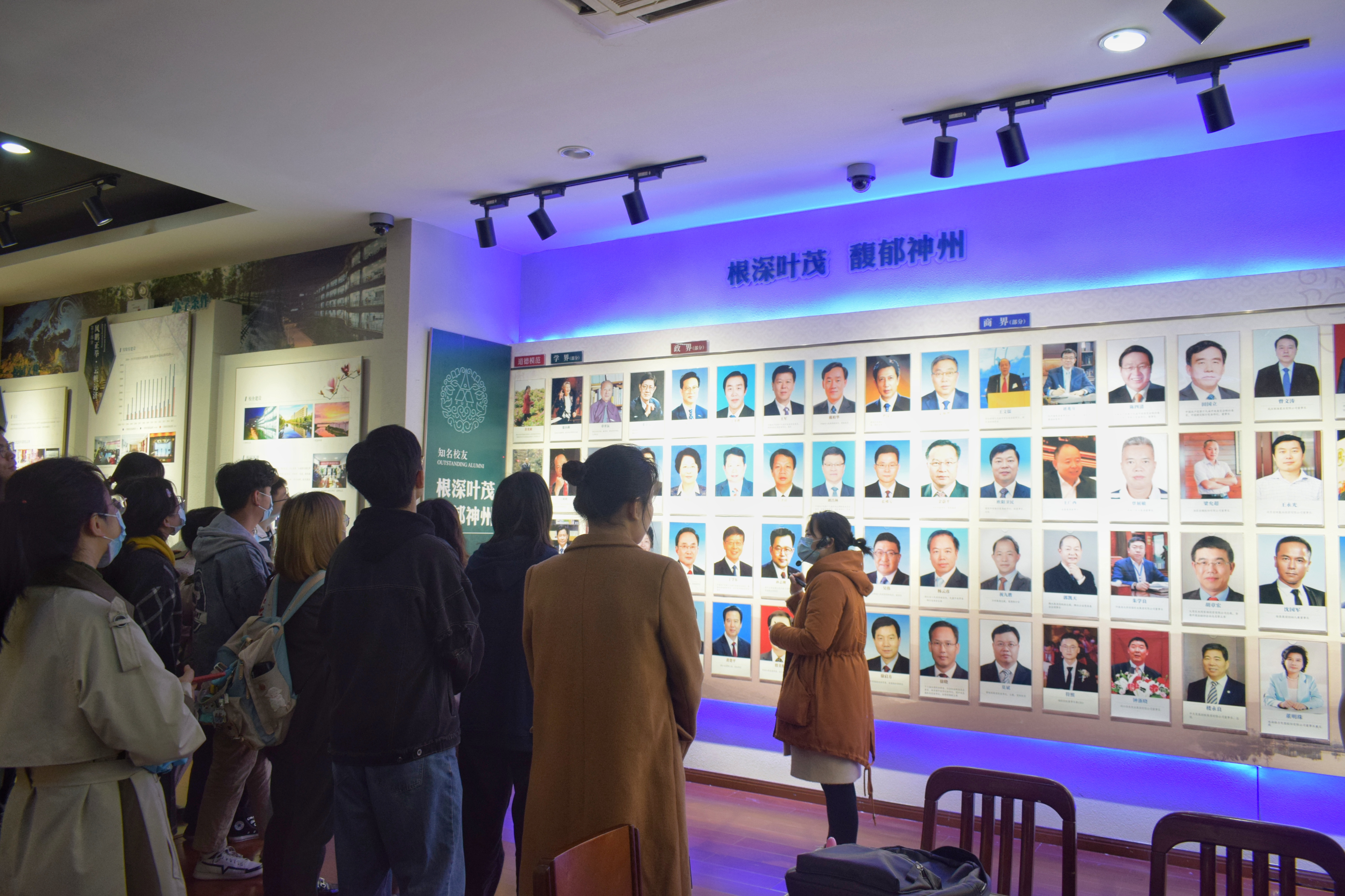 最后,讲解老师带领同学们来到知名校友墙前,介绍了不同领域、不同历史时期成绩卓然的校友,以榜样的力量激励同学们奋发向上,未来在不同的专业领域里摘得硕果,为校争光!