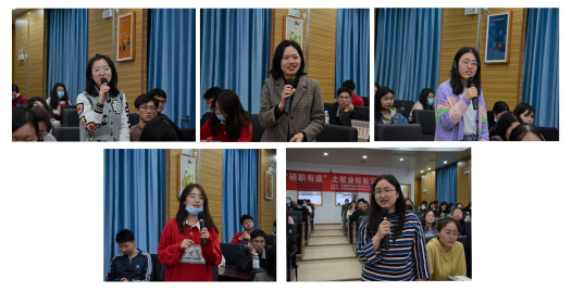 来自财政税务学院现签约中兴通讯股份有限公司的张依帆从简历制作、求职技巧、心态调整三大方面与同学们分享了求职心得。她谈到,简历制作重在丰富内容、突出重点、优势凸显,如此方能吸引HR的眼球。她同时指出,求职前期要提前了解企业情况,对自己有较为明晰的职业规划;求职中期要学会运用工具对自己的求职进度进行留痕惯例,及时记录自己的应聘进度,时刻保持头脑清醒;求职后期要保持良好的应聘心态,永不言弃,保持百分百的热情去面对结果。