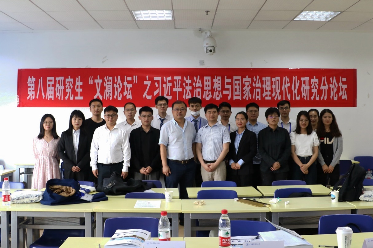 (通讯员 李晴)5月14日下午,中南财经政法大学第八届研究生“文澜论坛”之习近平法治思想与国家治理现代化研究分论坛在文澴楼515教室成功举办。分论坛以“习近平法治思想与国家治理现代化研究”为主题,旨在鼓励广大硕博生从法学学科的不同方向,深刻认识习近平法治思想的重大意义,聚焦习近平法治思想蕴含的新思想、新观点、新论断,将习近平法治思想贯彻落实到全面依法治国全过程和各方面,为更好地转化成全面建设社会主义法治国家的生动实践做出贡献。