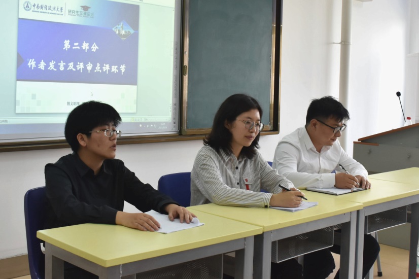 李谢标硕士以“古籍点校成果的著作权保护路径探析”展开了问题分析与研究;张志强硕士以“劳动经济补偿金的税法属性分析”为切入点,提出了对劳动经济补偿金设置的完善建议。针对以上发言,由陈虹副教授针对以上论文提出了进行了精彩点评,也指出了研究中存在的不足和问题。