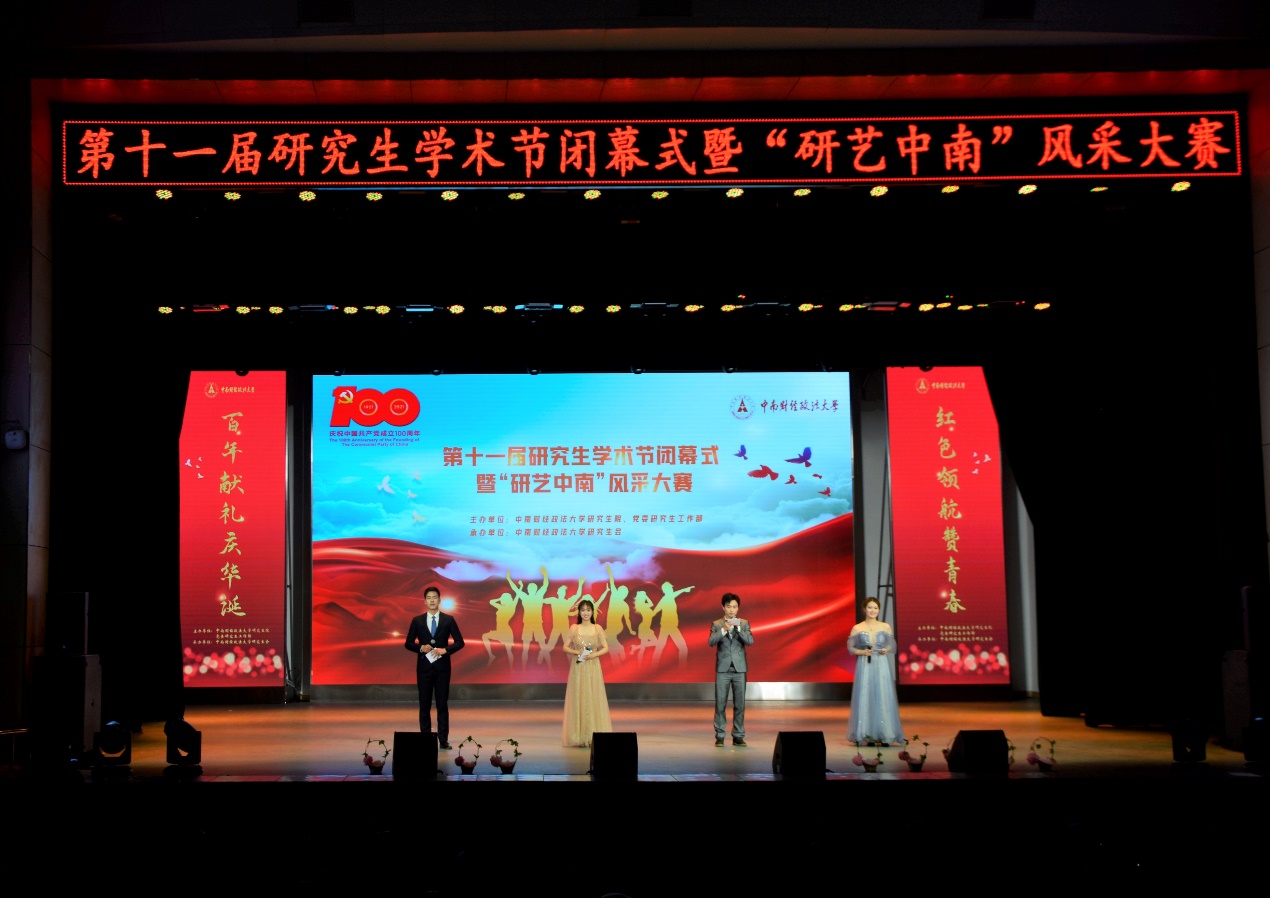 (通讯员:黄丽琼 管西菊 陈谦 赵鑫 摄影:毛姜娜 王童童)百年献礼庆华诞,红色领航赞青春。为庆祝中国共产党成立100周年,打造研究生美育大课堂,提升研究生艺术素养、人文素养、审美素养,6月2日晚,第十一届研究生学术节闭幕式之后,“研艺中南”风采大赛在南湖会堂精彩开演。校党委常委、副校长覃红教授,校党委常委、副校长姚莉教授,学校相关职能部门及各学院(中心)负责人出席了本次活动。