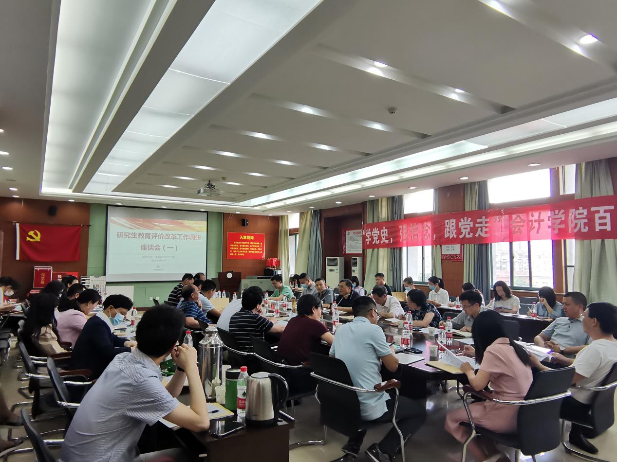 (通讯员 曹运波 摄影 王淑)“学党史、助发展、开新局,着力贯彻新发展理念,完善全面培养的育人体系,推进德智体美劳‘五育’并举研究生教育评价改革工作。”6月9日,在我校首场研究生教育评价改革调研座谈会上,各研究生培养单位代表们围绕《深化新时代教育评价改革总体方案》精神和我校实际各抒己见,纷纷为学校研究生教育评价改革工作积极建言献策。