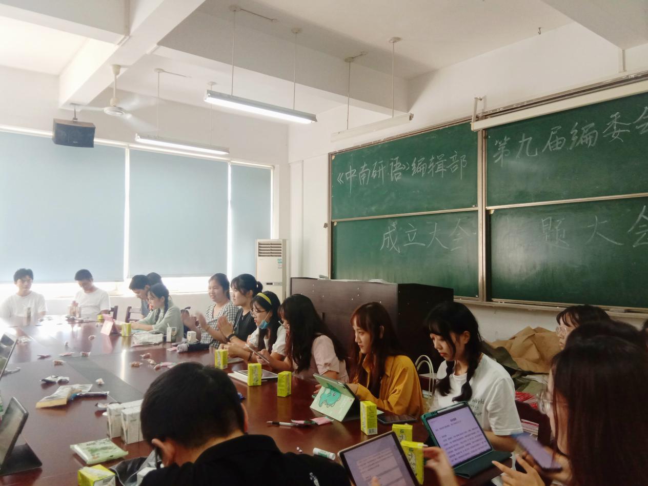 (通讯员 张国森 摄影 邵笑 梁子琪)2021年9月25日下午两点,《中南研语》编辑部第九届编委会成立大会暨第31期报题大会在文添楼104教室召开。《中南研语》常务副主编柯希鹏、执行主编曹晓宇、运营中心主任寿启明、专题策划主编黄逸飞、人物专访主编金铭、热点评论主编郭祥铂、文艺随笔主编冷琪、拾光掠影主编宋琦琪及全体编辑部新成员出席会议,会议由常务副主编柯希鹏主持。