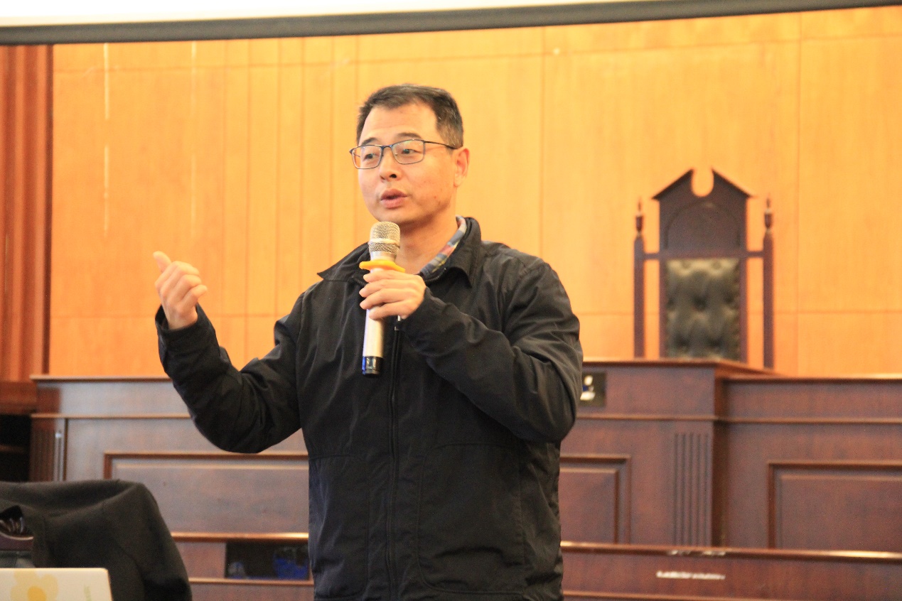 随后讲座正式开始。车浩教授以“什么是中国法治的本土资源?中国有本土资源吗?本土资源是什么?”三个问题作为切入点,理论结合实际,以日本法教义学的发展路径为例,向同学们论证了法教义学天然带有本土性,法教义学本土资源要以服务于本国司法实务为前提,之后联系我国刑法典“正当防卫”第三款条款以及典型案例“于欢案”做了进一步的探讨交流,并据此提出中国刑法学研究本土化的重要性,呼吁广大师生要从对外国制度的借鉴研究转向中国本土特色的挖掘中来。