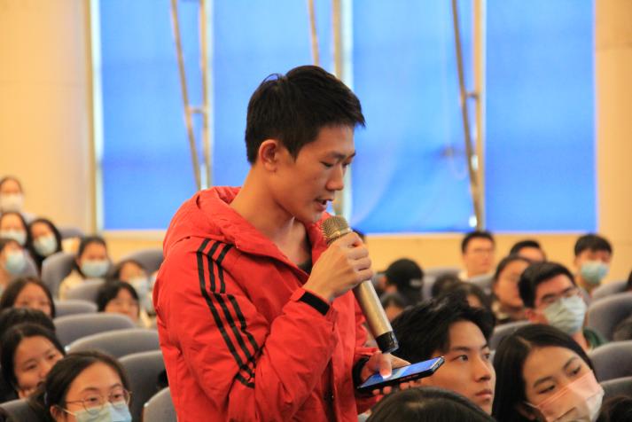 讲座进入提问环节。现场观众抓住宝贵的提问机会,积极踊跃发言。法学院王宇帆同学、刑事司法学院童楚惟同学、浙江师范大学法学系李海良主任、华中科技大学杜治晗讲师分别就“如何加强对法律实务的理解”、“法教义学与社科法学的差异”、“法解释学、法实证学与法教义学之间的关系”以及“法教义学是否会向社科法学靠拢”等问题向车浩教授进行请教,车浩教授耐心细致,一一作出解答,对在场的同学产生了深远的启发。