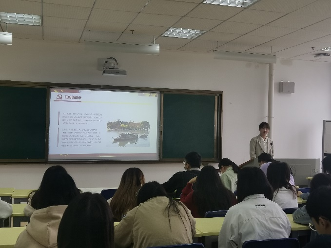 法律硕士教育中心2003班学生党支部成员韩琳以“红船精神代代传,砥砺奋进新时代”为主题展开分享。她详细讲述了“红船精神”的由来、内涵、历史地位和时代价值,指出‘红船精神’是开天辟地、敢为人先的首创精神,是坚定理想、百折不挠的奋斗精神,是立党为公、忠诚为民的奉献精神,她以习近平总书记重要讲话为切入点,号召大家不忘红船初心,走好新时代长征路。