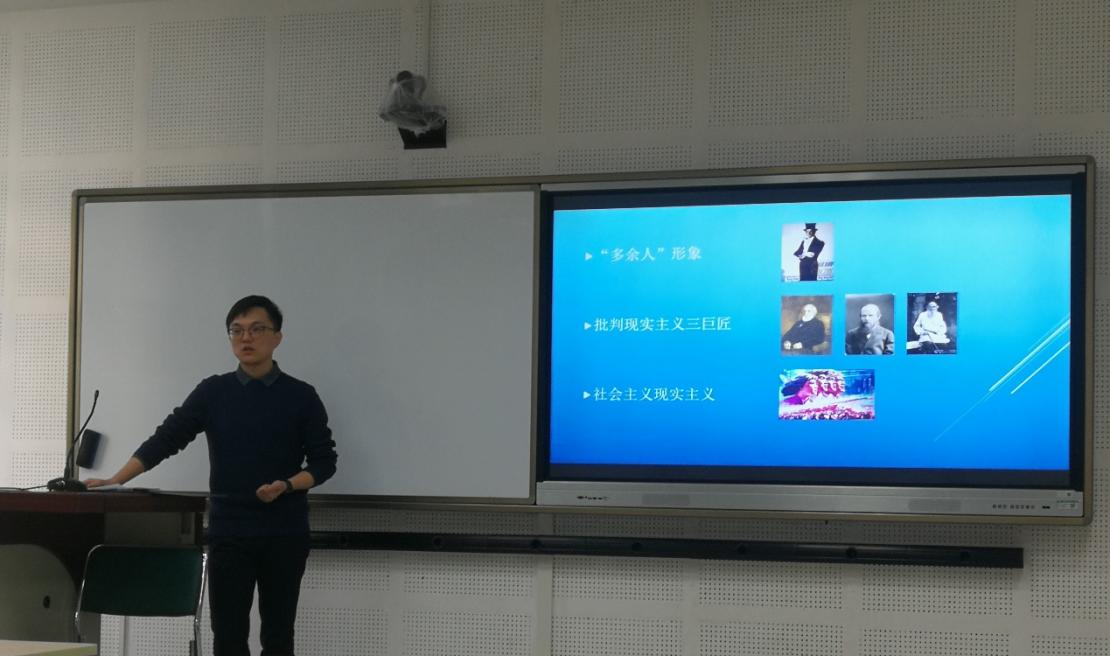 其中,刘早老师选取普希金创作的奥涅金这一人物形象作为“多余人”的典型代表,以瓦赫坦戈夫剧院的话剧《奥涅金》情节选段作为实例,阐释“多余人”的特点及其时代演化。此外,他还指出“多余人”形象对巴金、曹禺、鲁迅等作家创作的影响。讲座结束后,在场听众与刘早老师进行了活跃的探讨。此次讲座开拓了大家的学术视野,增进了大家对俄苏文学的理解。