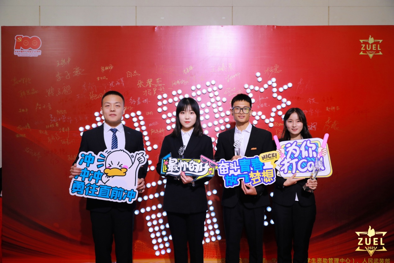 (通讯员 付慧娟 黄丽琼 苗雯 摄影 冯靖杰 曹译丹)为深入宣传新时代大学生先进典型,充分发挥榜样引领作用,传递青春正能量,引导全校学生从百年党史中汲取奋斗力量,用实际行动践行“请党放心、强国有我”的青春誓言,12月9日14:00,“2021典赞青春”中南财经政法大学优秀学生颁奖典礼在南湖会堂隆重举行。校党委书记栾永玉教授,校党委副书记、校长杨灿明教授,校党委常委、副书记陈明教授,校党委副书记、纪委书记侯振发教授,校党委常委、副校长闫平教授、覃红教授、姚莉教授、刘仁山教授、申祖武教授,校党委常委、党委组织部兼党委统战部刘琳琳部长,校长助理、教务部部长李志生教授以及各职能部门、各院(中心)的领导老师出席了本次颁奖典礼。