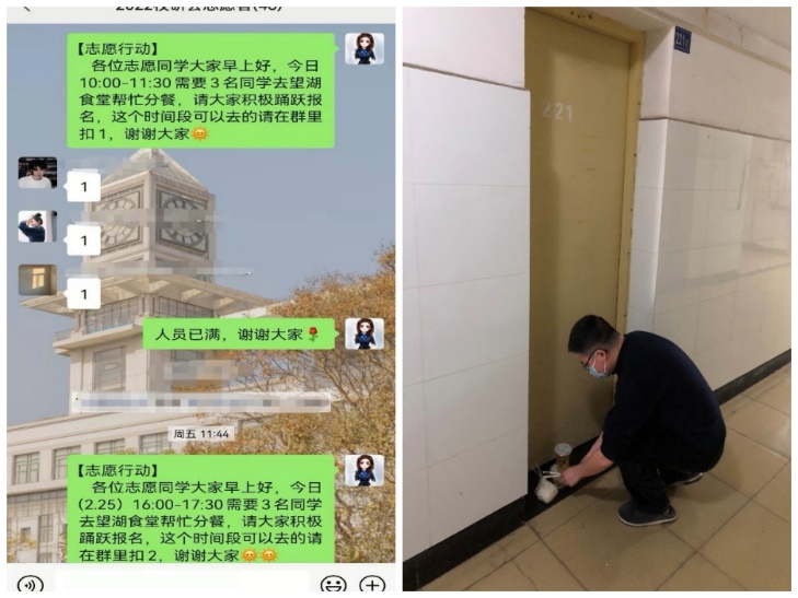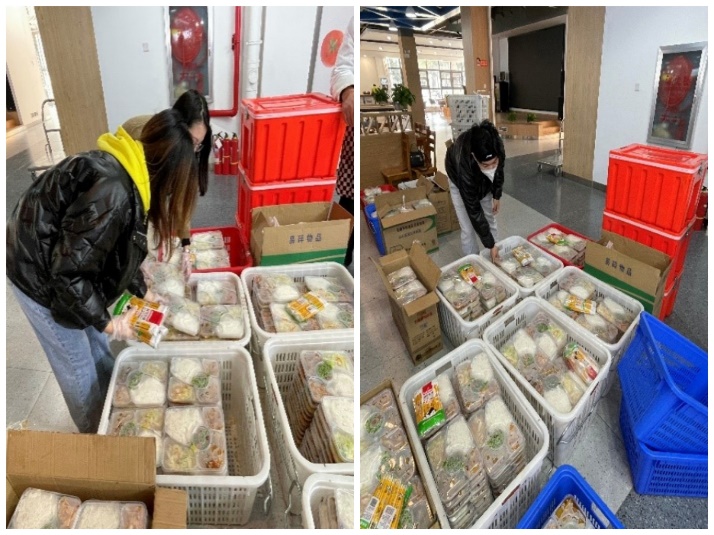 自2月21日以来我校部分宿舍楼栋实行封控管理。封控楼栋内的党员同志积极参与餐食领取及派送,及时反馈同学们关于核酸检测、餐食、购物等方面的意见建议;楼栋外的党员同志踊跃报名,帮助食堂工作人员完成防控楼栋几百份餐食的分装、运送、发放工作,分担了后勤工作人员的工作压力,彰显了“奉献、友爱、互助、进步”的志愿精神和青年党员的责任担当。