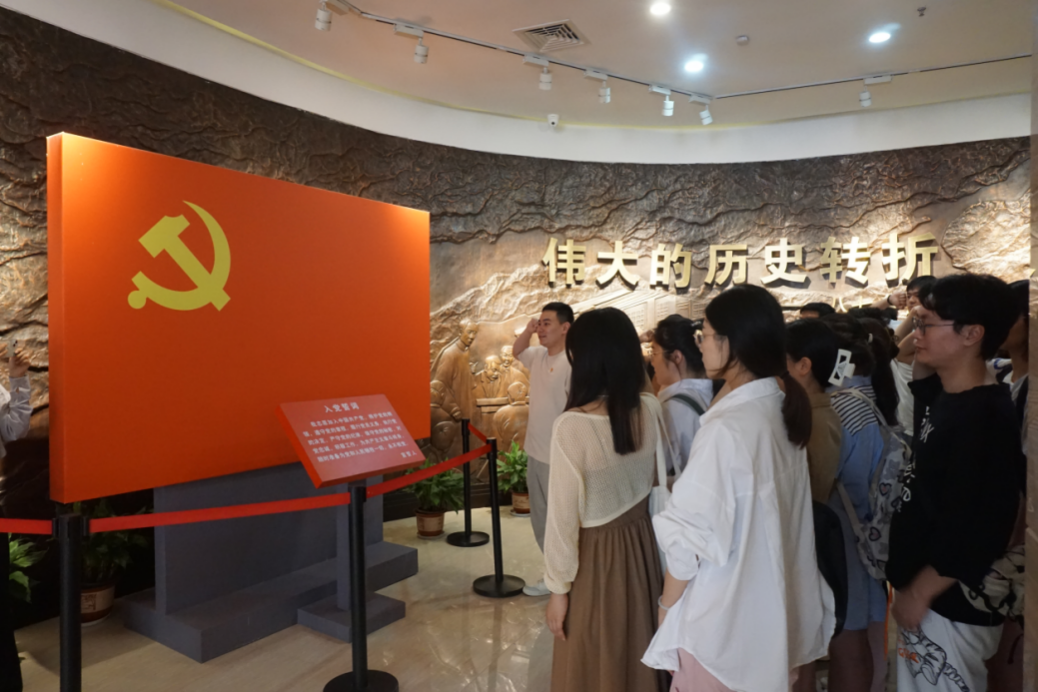 参观伊始,30余名党员及预备党员举起右拳,重温入党誓词,以坚定有力、铿锵嘹亮的宣誓声,表达不忘初心、牢记使命的信念和决心。
