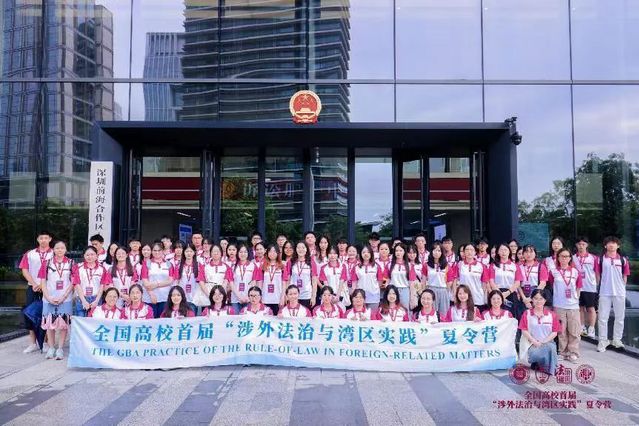 (通讯员 平宸)7月28日至8月4日,由中国法学会法学教育研究会、涉外法治人才协同培养创新基地秘书处、中共深圳市委全面依法治市委员会办公室指导,深圳大学法学院与福田区司法局主办,深圳市律师协会及北京市汉坤(深圳)律师事务所、北京金诚同达(深圳)律师事务所、北京市盈科(深圳)律师事务所、北京大成(深圳)律师事务所、华商希仕廷(福田)联营律师事务所共同支持的全国高校首届“涉外法治与湾区实践”夏令营顺利举行。全国51所高校的64名学生、16名教师共计百人参加活动。作为教育部首批“涉外法治人才协同培养创新基地(培育)”之一,法学院国际法学系雷益丹副教授、2021级本科生平宸应邀来到深圳大学参与夏令营。