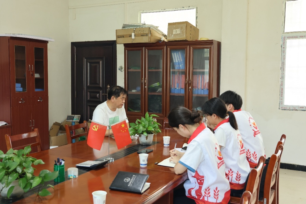 午后的铁山村云雾缭绕,实践团首先与铁山村村干部深入访谈,了解铁山村的红色文化。村干部以徐绍华将军的革命事迹为引,勾勒出这座红色村庄的精神坐标:“徐将军‘朴诚勇毅’的家风,至今影响着村民们干事创业的劲头。”交流中,村干部详细说明了村集体茶园作为支柱产业,在带动村民就业、增加集体收入方面发挥的作用,也坦诚提出了当前在基础设施和生产设备上面临的实际困难。