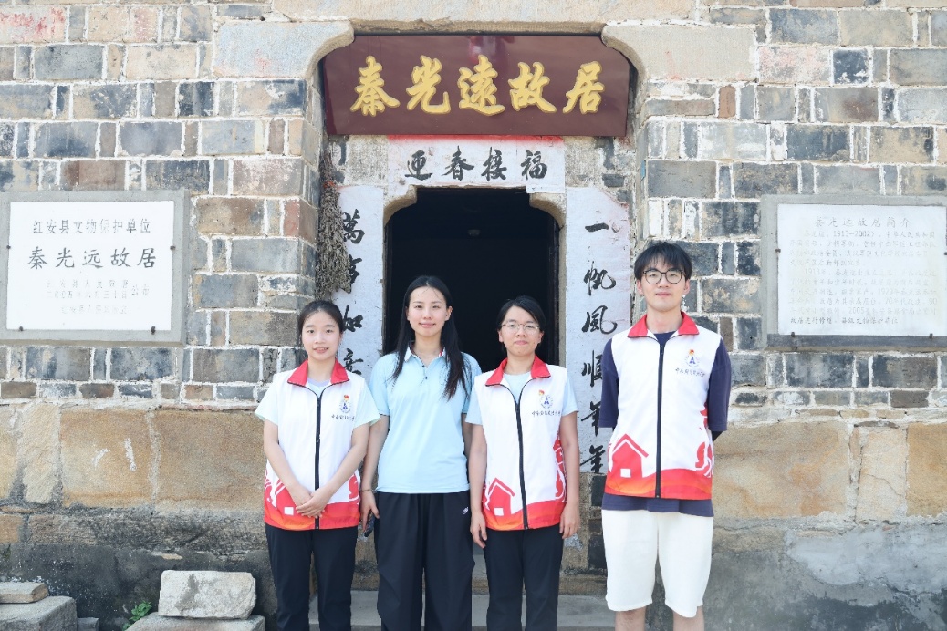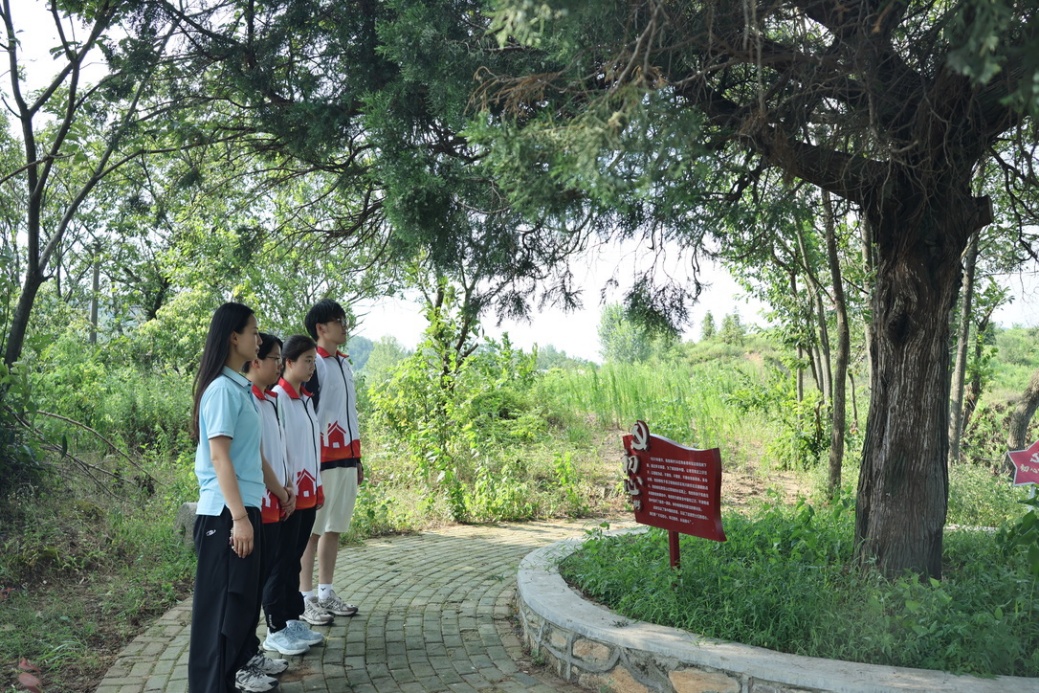 随后,实践团成员实地走访三同教学基地、红军长征路微缩步道、秦光远故居、家书长廊、革命烈士纪念碑与初心树,随后又走访了观音阁村村民。蜿蜒的红军步道砂石硌硬,浓缩着长征的艰辛;秦光远故居质朴的院落,承载着将军的家国情怀;家书长廊内,泛黄信笺上“为革命不怕死”、“不搞特殊化”的殷殷嘱托,字字千钧,成为党性教育的生动教材。初心树下,枝繁叶茂的老树见证着革命岁月的烽火与新时代的变迁,让党员于绿荫中重温誓词。团队成员深刻感受到,从家书字句到连片大棚,从革命足迹到现代民宿,无一不是“为人民谋幸福”初心的鲜活践行。