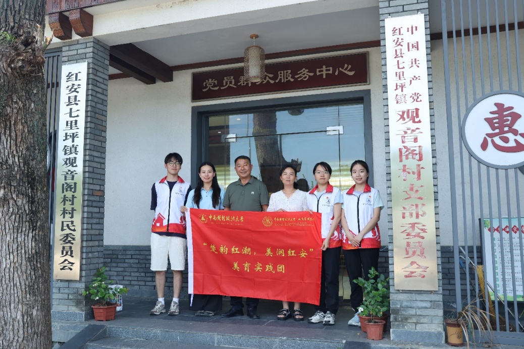 (通讯员 徐一菱 刘怡庆 摄影 崔颖异 朱泉)7月9日,中南财经政法大学工商管理学院“楚韵红潮,美润红安”研究生美育实践团走进红安县七里坪镇八一村与观音阁村,在“思想铸魂—党史学习—红色研修—实地调研”四维路径指引下,探访全国首批红色美丽村庄的振兴实践,为红安研学之旅画上圆满句点。实践团聚焦红色美丽村庄建设,通过实地走访、深度访谈与沉浸体验,探寻红色基因赋能乡村治理与产业发展的创新路径。