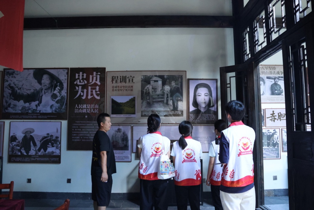 “从牛栏改造的‘三同’书院到红军井旁的思源亭,红色资源活化为发展动能。”队员们在参观方和明事迹陈列馆时,被这位“不当团长当农民”的英烈故事深深打动。斑驳的土墙、简朴的木桌木椅、褪色的军装、泛黄的立功证书,每一处遗迹、每一件实物都是无声的史诗,诉说着先辈“朴诚勇毅”的奋斗历程。在英烈广场肃穆的碑石前,镌刻的英名如星辰闪耀,团队成员驻足凝视,深刻感悟信仰的力量。塆组党建活动室内,鲜红党旗与现代治理展板交相辉映,印证着红色基因在基层治理中的赓续与活化,历史荣光正转化为驱动今日发展的澎湃动力。