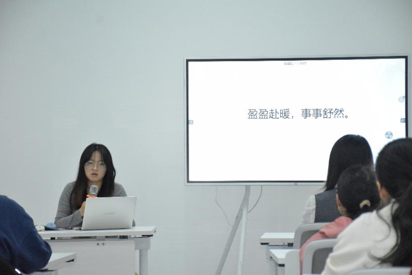 随后,杨吉悦为同学们梳理了申请博士全流程经验。她结合自身的实习实践经历,从兴趣、性格、个人优势三个维度,分享了自己在企业就业、考公考编、读博之间确定申博方向的思考过程,建议大家在实践中明确适合自己的发展赛道。针对申博全流程,杨吉悦拆解了信息收集、材料准备、时间规划等关键环节,同时区分了统考与申请考核两种申博方式的不同要求。她还详细说明了电子材料与纸质材料的格式规范、命名规则与提交要求,提醒大家提前做好准备。最后,她总结了申博的心得:早规划,重积累,善借力,强执行,稳心态,并以“盈盈赴暖,事事舒然”与同学们共勉,鼓励大家保持积极心态,稳步推进申博进程。