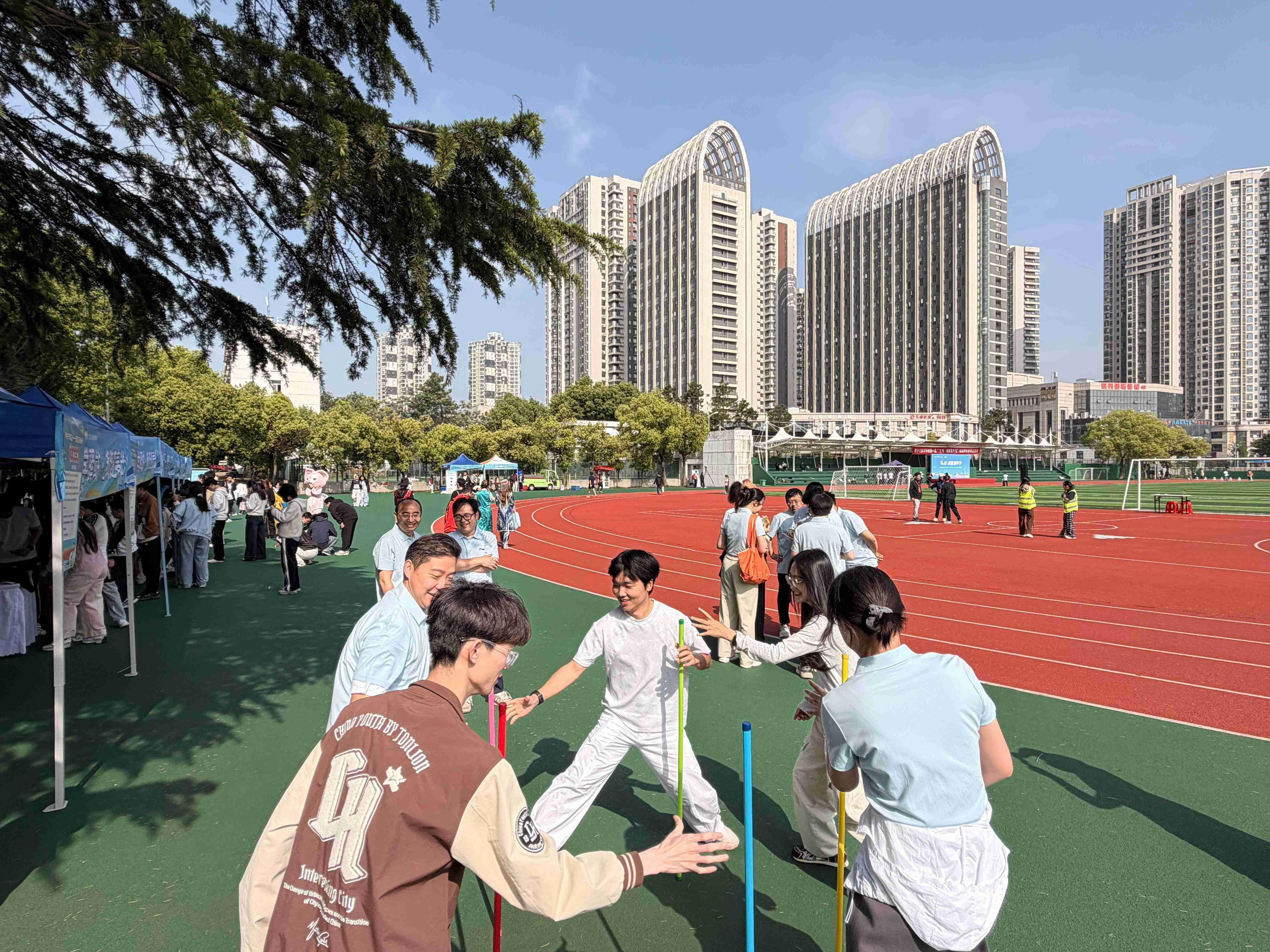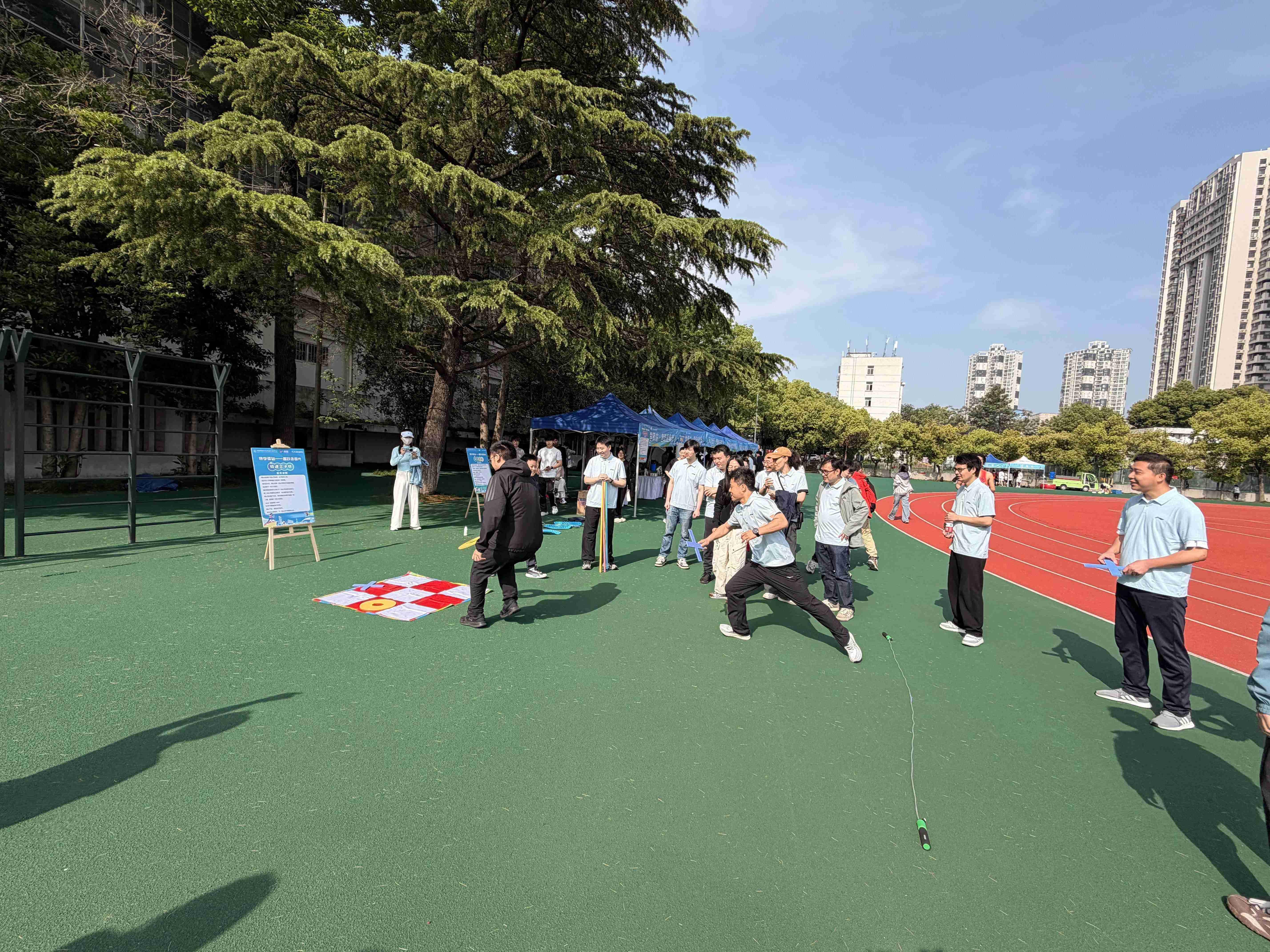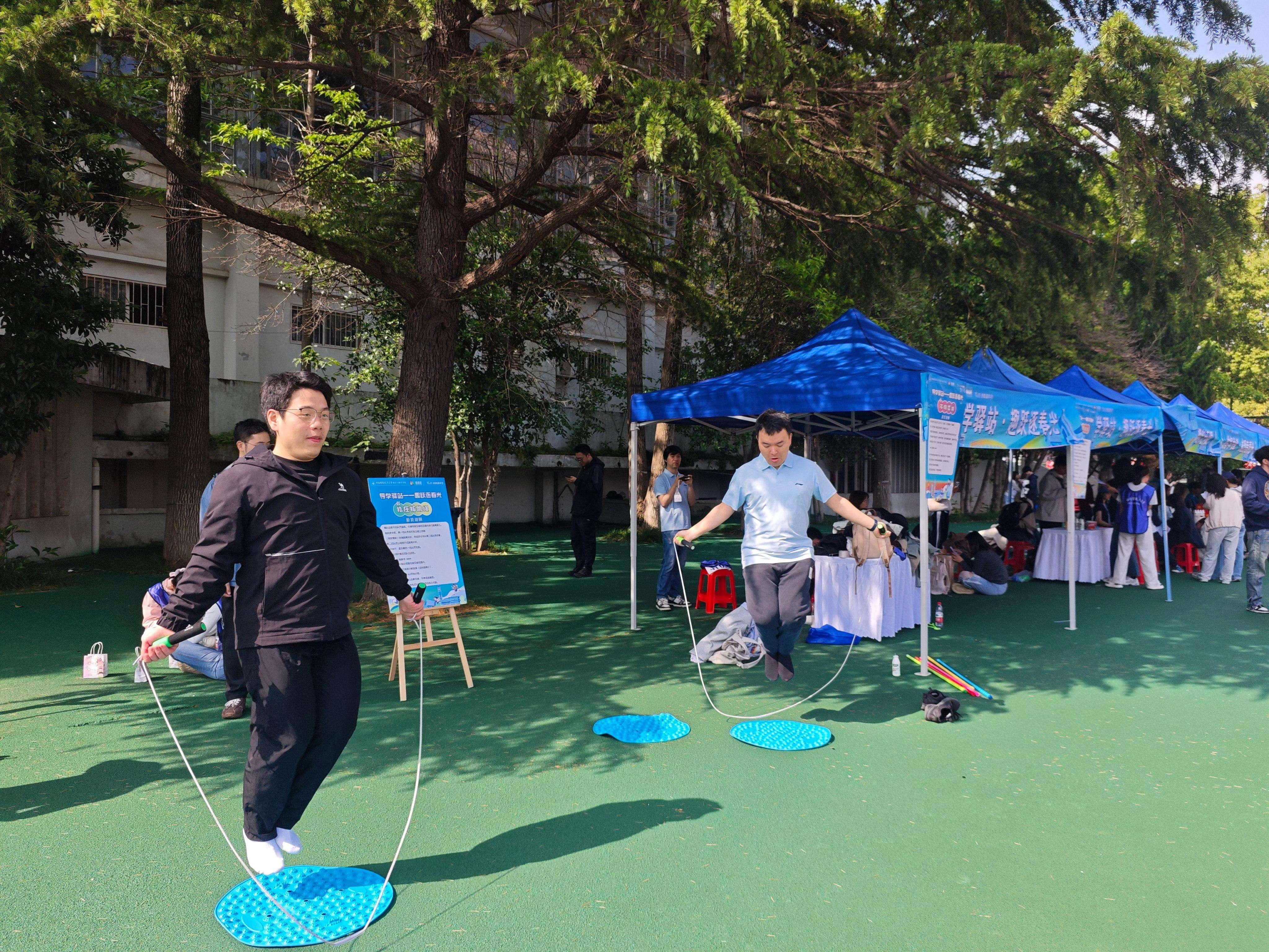 统计与数学学院研究生会专门设置“导学驿站——趣跃逐春光”游园环节,策划极速三子棋、指压板跳绳、乘风破浪、不倒森林四项互动游戏,组织研究生与导师组队竞技,在趣味互动中凝聚导学力量、深化师生情谊。
