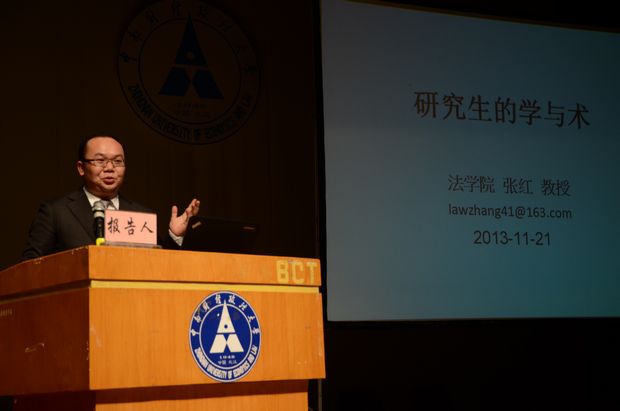 我校法学院副院长张红教授为与会师生作了题为《寻找研究生的学术命题》的专题报告。