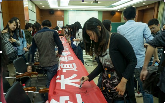 三位优秀研究生的学习经验分享,让在场的同学受益匪浅,活动取得了预期的效果。活动结束前,所有参会同学在学术道德承诺的横幅上签下了自己的名字,表明了自己坚守学术道德的信心和决心。