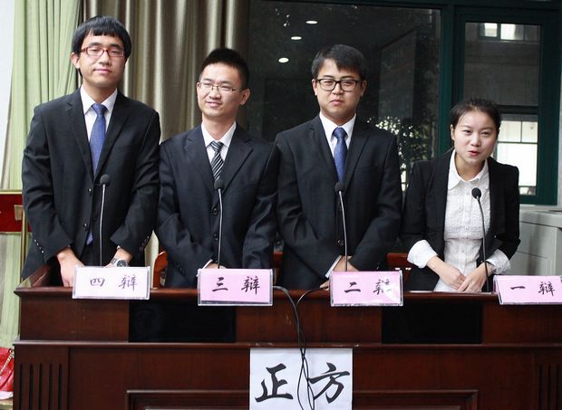 在本场总决赛中,辩论双方围绕“社会娱乐进校园是否有利于校园文化建设”这一主题,就时下“跑男”进校园等社会热点问题进行针锋相对的激辩。经过激烈角逐,法学院代表队荣膺冠军,公共管理学院代表队斩获亚军,统计与数学学院代表队、工商管理学院代表队同获季军。在团队奖方面,外国语学院、刑事司法学院获得最佳配合奖,财政税务学院、哲学院获得优秀组织奖。在个人奖方面,公共管理学院袁庆同学获“最佳辩手”称号;法学院孙美霞、公共管理学院黄一杰获“最佳言辞奖”;统计与数学学院沈淑、工商管理学院匡敏获“最佳仪态奖”。
