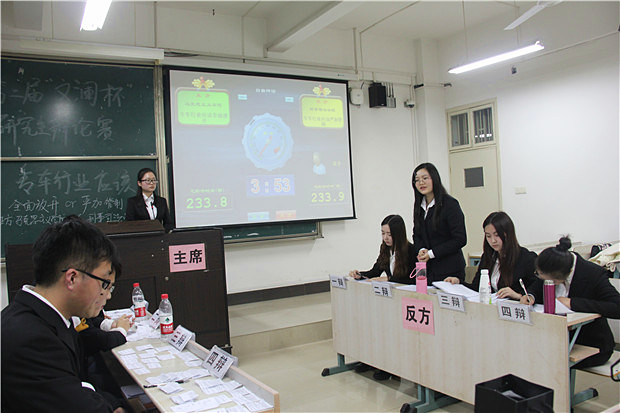 本次复赛,四组队伍围绕“反腐倡廉重在预防还是重在惩治”和“专车行业应该全面放开还是应该严加管制”这两个颇具时代感和前瞻性的话题展开辩论,八支代表队你来我往,针锋相对。开篇立论阶段,一辩开宗明义,简明有力地陈述了己方观点;驳论阶段,二辩条分缕析,找出对方破绽反证己方论点;质辩阶段,三辩步步逼问,设置情境以诱使对方认同本方观点;自由辩论阶段,辩手们唇枪舌剑,尽展思辨才华;总结陈词阶段,四辩正本清源,重申己方论点。经过五个环环相扣的激战环节,为观众和评委献上了一场场异彩纷呈的精彩对决。相对于初赛中的拘束与些许的紧张,复赛过程中各位辩手表现沉稳淡定,言辞犀利生动,举止利落有礼。