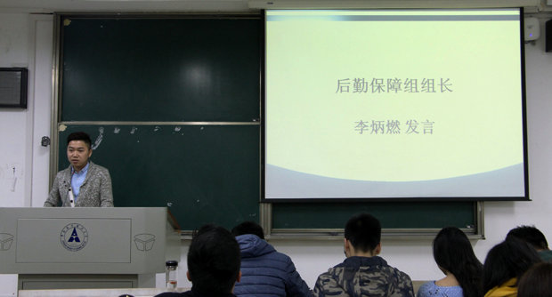接着,第三届“ 文澜论坛”日常工作小组组长们依次发言。文档编辑组组长李飞鹏就论坛相关稿件的撰写工作进行了说明;策划协调组组长姚远总结了前期的筹备工作并对分论坛招标等事宜进行了部署;专项事务组组长李梦妍对论坛颁奖晚会的筹备工作进行了说明;网络宣传组组长郑俊宇总结了前期的征稿宣传工作及成效并表示将继续做好论坛后续宣传工作;对外联络组组长张翀汇报了前期与全国近百所高校的合作宣传工作情况,并就后续对外接待事宜进行了安排;后勤保障组组长李炳燃就论坛物资保障和分论坛对接等工作作了相关说明。