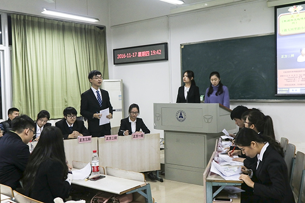 本次辩论赛的辩题十分丰富,既包含“宽松式管理对于大学生成长的利弊”、“大学生兼职的利弊”等贴近大学生生活的辩题;也包含“做大河里的小鱼还是小河里的大鱼”、“存在与思维谁决定谁”等富有哲学性的辩题。在初赛的各赛场上,各位辩手谈古论今、引经据典,用简练精辟的语言向观众呈现了一场场思维盛宴。开篇立论阶段,双方一辩分别就自己的辩题进行了立论陈词,可谓针锋相对、气势如虹。驳论环节各方辩友言辞犀利、观点尖锐,驳论有理有据、切中要点。八分钟自由辩论环节一问一答,唇枪舌剑,暗流汹涌,各方辩手互不相让却又不失风度,比赛气氛紧张而又激烈。总结陈词阶段,各方四辩分别对各自的观点进行了总结,充分表现出了我校学子的思辨性与前瞻性。