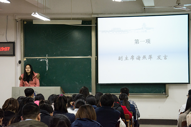 大会伊始,第四届“文澜论坛”组委会委员、校研究生会副主席诸燕萍发言。她首先介绍了本届论坛的收稿情况,充分肯定了第四届研究生“文澜论坛”前期征稿阶段的工作成果,并对全体筹备人员的辛勤付出表示感谢;接着,诸燕萍强调后续的审稿、主论坛、分论坛、闭幕式等工作任务繁重、时间紧迫,希望大家在下一阶段的工作中继续保持百分百的工作热情,认真负责的工作态度,齐心协力将本届论坛办大、办好、办出水平。