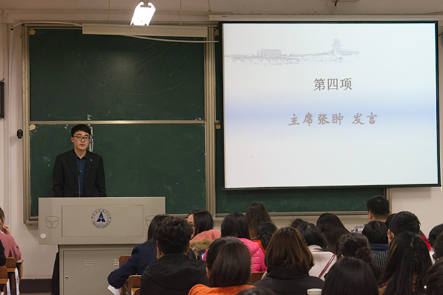 最后,第四届“文澜论坛”组委会委员、校研究生会主席张翀对本次动员大会作了精彩的总结发言。张翀指出,本届“文澜论坛”前期筹备工作得以顺利开展,离不开研究生院、党委研究生工作部各位老师的大力支持以及《研究生学报》编辑部、《中南研语》编辑部、研究生会各部门的通力配合。“文澜论坛”现已成为具有全国影响力的学术活动品牌,希望大家能够齐心协力将本届研究生“文澜论坛”办得更加出彩。另外,他希望大家能够做到善始善终,在工作过程中还应不断创新、思考,在各项细节上加以改进、完善。