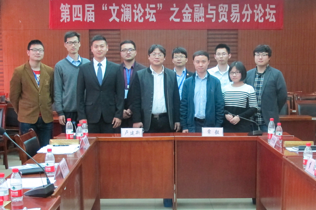 (通讯员 刘洁 王璐颖)4月21日下午2时,由中南财经政法大学主办,中南财经政法大学研究生院、党委研究生工作部及《中国工业经济》编辑部联合承办,校研究生会、金融学院研究生会协办的第四届研究生“文澜论坛”之“金融与贸易”分论坛在我校文泉南楼313会议室拉开帷幕。金融学院卢建新副教授、中国社会科学院工业经济研究所覃毅研究员作为评议专家出席了分论坛。七位优秀论文获奖者和我校研究生代表20余人参加了此次活动。本次会议由金融学院研究生会成员闫杰主持。