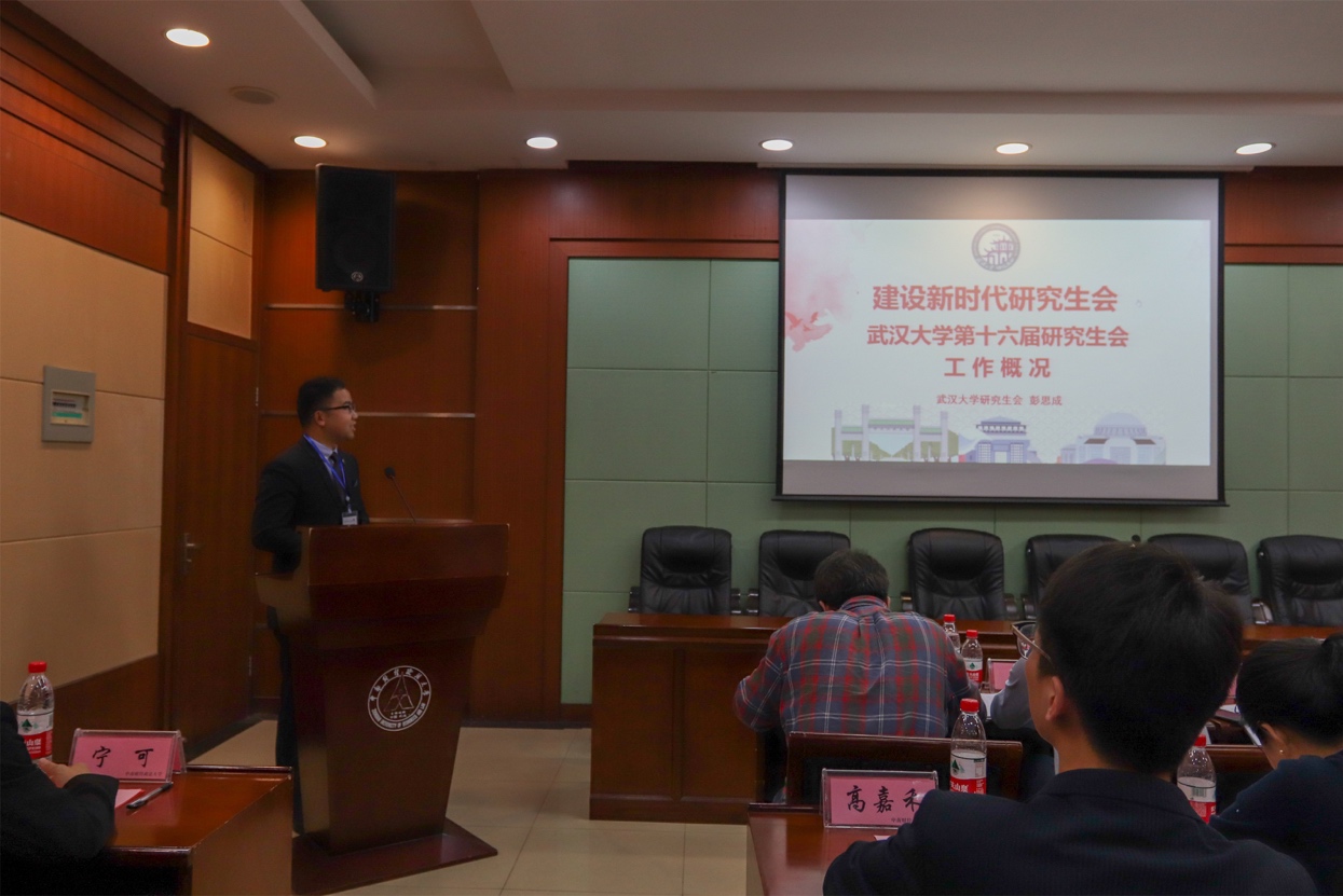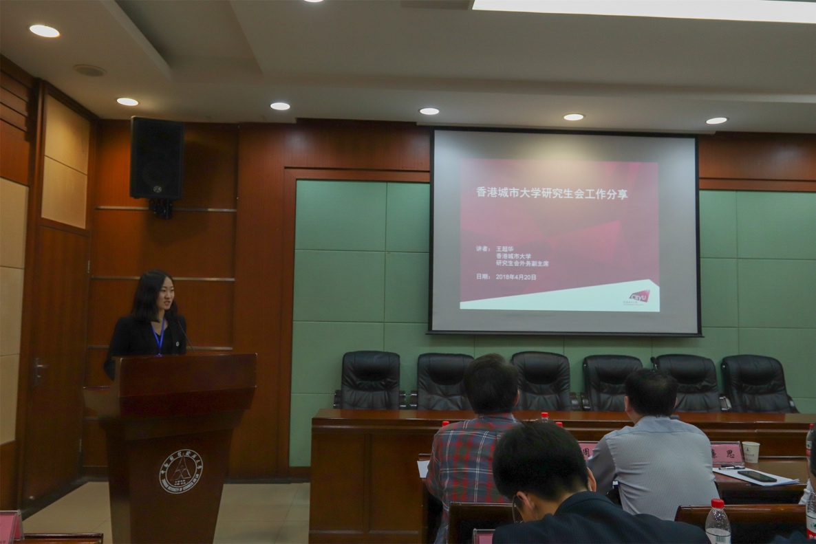 接着,武汉大学研究生会主席彭思成提出新时代研究生会要有新气象、新作为,为同学谋需求,为学校聚合力,以“学生为本”,并以武汉大学研究生会一系列的特色的活动为例,对研究生会工作改进提出几点建议;香港城市大学研究生会副主席王超华对香港城市大学的发展历程以及校研究生会的机构设置和人员构成作了介绍,重点介绍了联谊活动、学习发展、领袖培养和公益活动四个方面的活动类型。