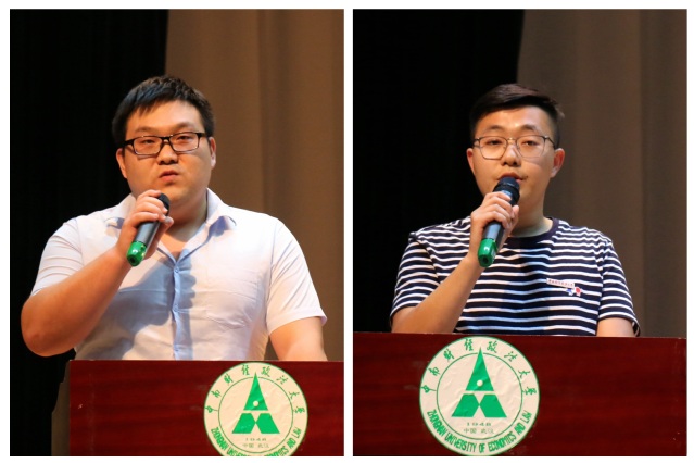 在校生代表张贵声师兄结合亲身经历,阐释对成长的理解。在他看来,通过对目标的明确规划,把所学知识投入到实践中,积极融入到研究生生活的竞争与挑战,丰富三年的课余生活,才能真真切切地感受到法律世界的美好。新生代表杨延兴以“感谢和珍惜”为主题发表演讲。他真诚地感谢各位老师,感谢曾提供帮助的师兄师姐,感谢不甘于平庸而追求上进的自己。同时,他也不忘珍惜在此相遇的同学们,珍惜优质的师资平台,展望着对未来专业领域的建树,渴望着为中国特色社会主义力量注入源头活水。
