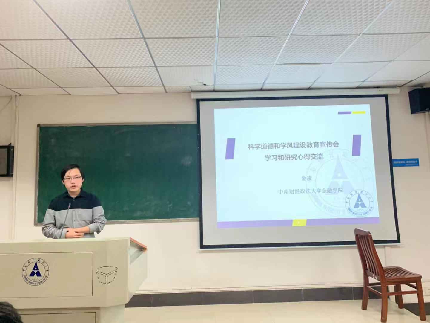 11月12日晚金融学院研究生齐聚文添楼503教室,开展“增强诚信考试意识、端正学术态度”宣讲。讲座开始,2019级金融工程硕博连读博士研究生,2019年国家奖学金获得者金凌分享自己在科研学习的心路历程。他以自己和导师合作在《经济研究》发表的文章为例,强调到研究生要注重英文阅读,精读引言、文献综述等部分,同时建议要积极的、坦诚的与导师交流,多参与高质量的学术会议,要能耐住寂寞,能品味枯燥。