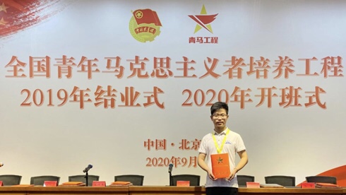 (通讯员:付慧娟)近日,全国青年马克思主义者培养工程2019年结业式、2020年开班式在中央团校举行。共青团中央书记处书记徐晓出席并讲话。中央组织部、教育部、民政部、农业农村部、国资委、中国国家铁路集团有限公司有关负责同志,学员理论导师代表,全国“青马工程”2019年和2020年学员参加开班式。我校公共管理学院2018级硕士研究生钟开炜同学作为2019年全国“青马工程”学员顺利结业,获评“优秀学员”并作为代表上台领奖,再次为学校争光!