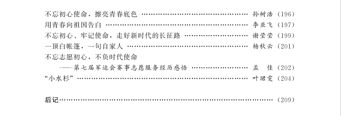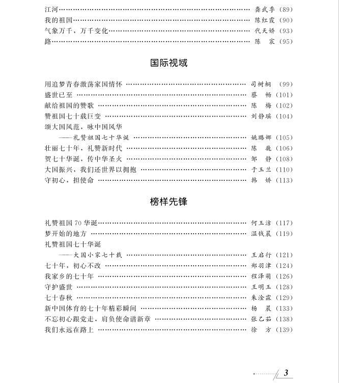 青年是中国最有活力、最有思想、最有干劲的群体,将青年学生对祖国70华诞的感想汇聚起来并集结出版,是对青年爱国情感的再一次凝聚和升华。作为青年大学生,对家国的热爱、对先烈的怀念,是我心底深处的情感基调。时至今日,祖国日渐富强,人民安居乐业,成就来之不易,我将以父辈为榜样,续写祖国的发展。