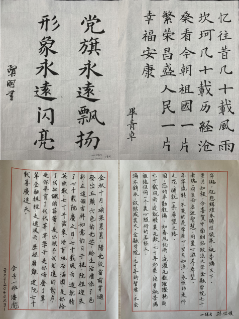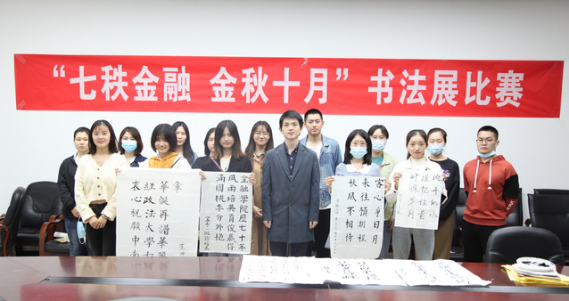 (记者 郭东 陈寒星 陈锐涛)2020年是特殊的一年,为庆祝中国共产党成立99周年与中南财经政法大学金融学院七十华诞,进一步把学习贯彻党的创新理论同学习党史、新中国史、改革开放史、社会主义发展史、中南财经政法大学校史、金融学院史相结合,形成四+二“六史”学习体系,共助金融学院双一流建设,中共中南财经政法大学金融学院研究生党总支10月23日晚在文泉楼南408举办了“七秩金融 十月金秋”书法比赛活动。院党委副书记李沛、院党政办公室主任张戈、金融学院研究生党总支副书记郭东及各党支部成员出席,活动由郭老师主持。