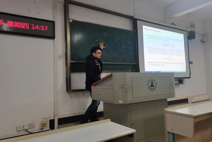 讲座中,谭用教授首先通过对比传统回归模型阐述了贝叶斯回归模型的进步性,并详细介绍了两者的区别和贝叶斯回归的基本原理;接着通过讲解Metropolis的算法,引出贝叶斯估计的具体步骤。贝叶斯估计在国内应用尚少,对其深刻理解的人也属少数,谭用教授运用其通俗的言语向在场师生分享了贝叶斯回归模型的相关内容,展现了扎实的学术能力。
