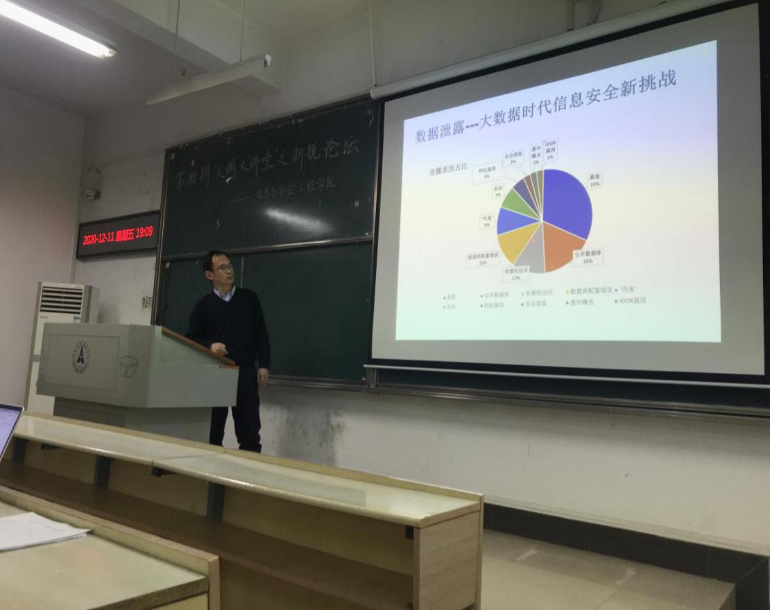 本次活动以广大青年学子关心的前沿学术话题为切入点,紧跟时事脉动,关注热点民生,旨在营造浓郁的学术氛围,促进研究生学术能力的提高。此次活动面向中南财经政法大学研究生,活动邀请了中南财经政法大学信息与安全工程学院的熊平教授为大家带来以“大数据背景下的机器学习与隐私保护”为主题的演讲。讲座主要介绍了隐私保护的相关概念、法规和背景,以及在数据利用过程中隐私保护的几种应用场景,并针对具体应用,从技术层面介绍实现隐私保护和机器学习的具体方法。