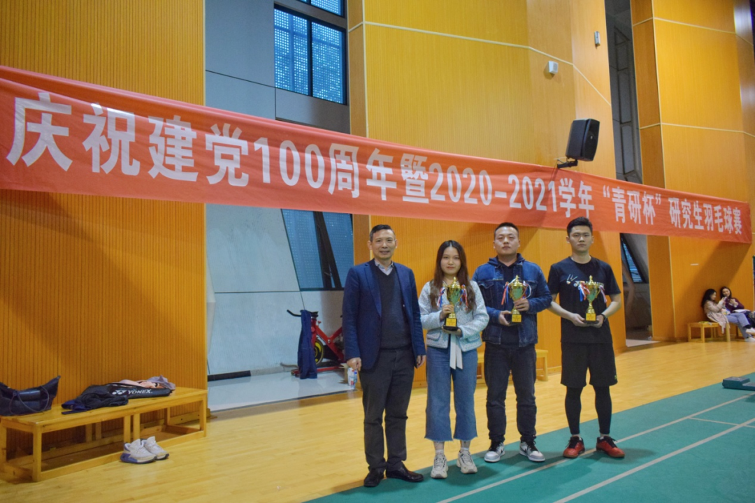 (通讯员:王启贤 罗玉婷)2021年4月10日,庆祝中国共产党建党一百周年暨2020-2021学年“青研杯”研究生羽毛球赛在南湖校区小球馆成功举办。本次研究生羽毛球赛由研究生院、党委研究生工作部主办,校研究生会承办,党委研究生工作部肖翠祥部长作为颁奖嘉宾出席本次活动,来自15个学院(中心)的研究生代表队参加了此次比赛。经过四轮激烈角逐,财政税务学院研究生羽毛球队最终取得了冠军的好成绩。本次比赛采取团体赛的形式,包含男单、女单、男双、女双和混双五个项目。比赛全程如火如荼,激动异常,财政税务学院全体运动员全力以赴,奋力争取最高荣誉。