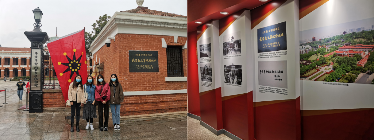 实践活动中有9组、共35人前往辛亥革命武昌起义纪念馆参观。它依托中华民国军政府鄂军都督府旧址建立,位于湖北省武汉市武昌区武珞路1号,因红墙红瓦称之为“红楼”。纪念馆内的展览分为四个部分:第一部分风动汉上。分别从帝国主义列强的侵略,张之洞与湖北新政的举措,湖北咨议局的立宪运动和革命党的早期活动四个方面说明辛亥革命爆发的历史必然性。第二部分武昌首义。介绍湖北革命团体大联合筹划发动武昌起义以及湖北境内响应起义的历史事实,以圆雕场景艺术再现了首义历史,首义之夜。第三部分走向共和。介绍鄂军都督府的创立、都督府的文告与举措、阳夏保卫战和各省响应与民国肇建。第四部分复兴之光。用可感可知的生活体验和琳琅满目的文物,讲述辛亥革命的历史和现实影响。