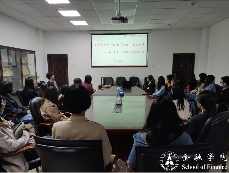 (学生记者 王杰)4月24日下午,由教育部社会科学司和人民网联合组织开展的“全国大学生同上一堂思政大课——‘四史’讲堂”在人民日报社人民网“云开讲”,金融学院组织全院研究生通过集中学习和以寝室为单位观看直播的方式进行学习交流,并在会后进行积极研讨,引导同学们在“四史”学习中坚定信仰、明确方向。