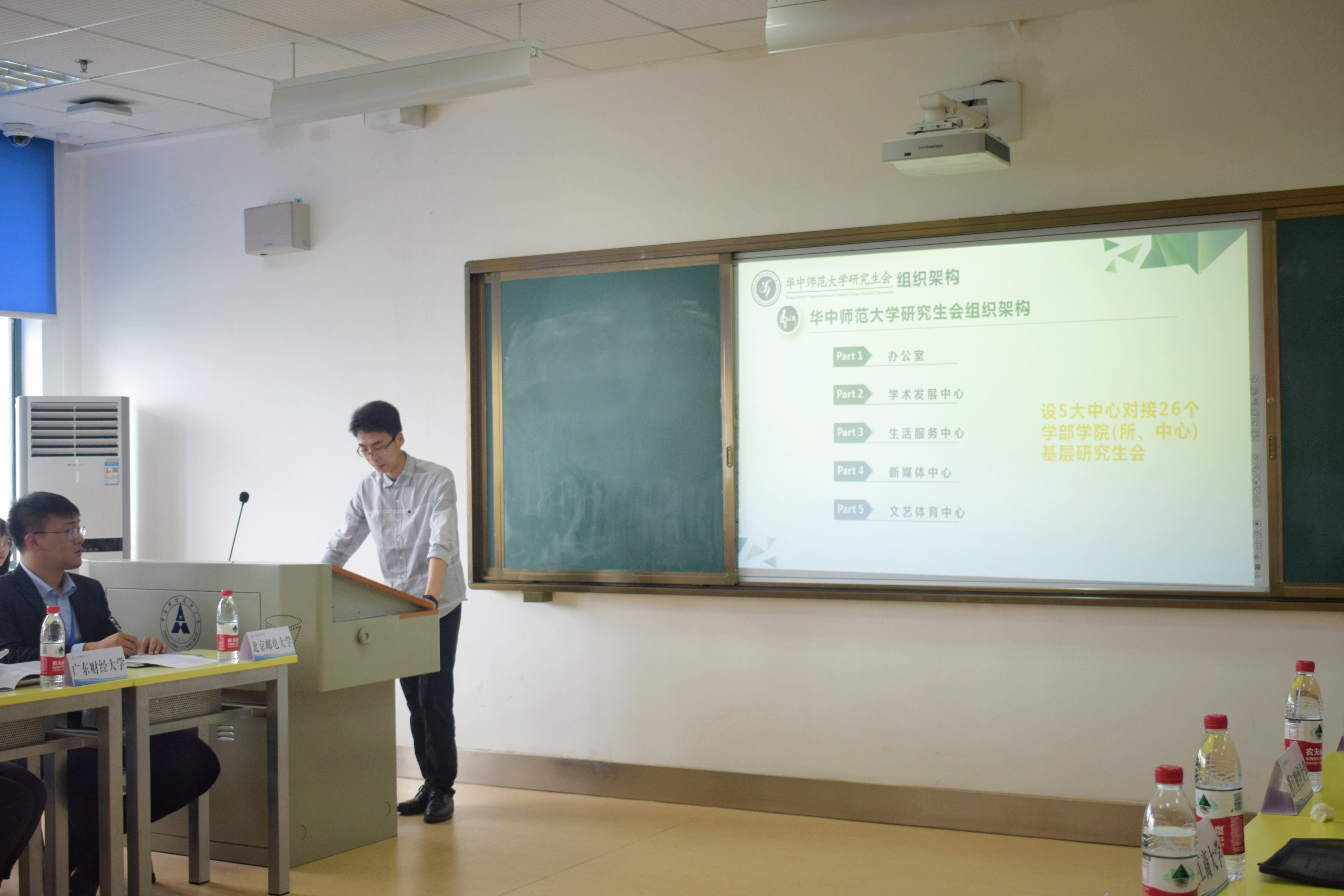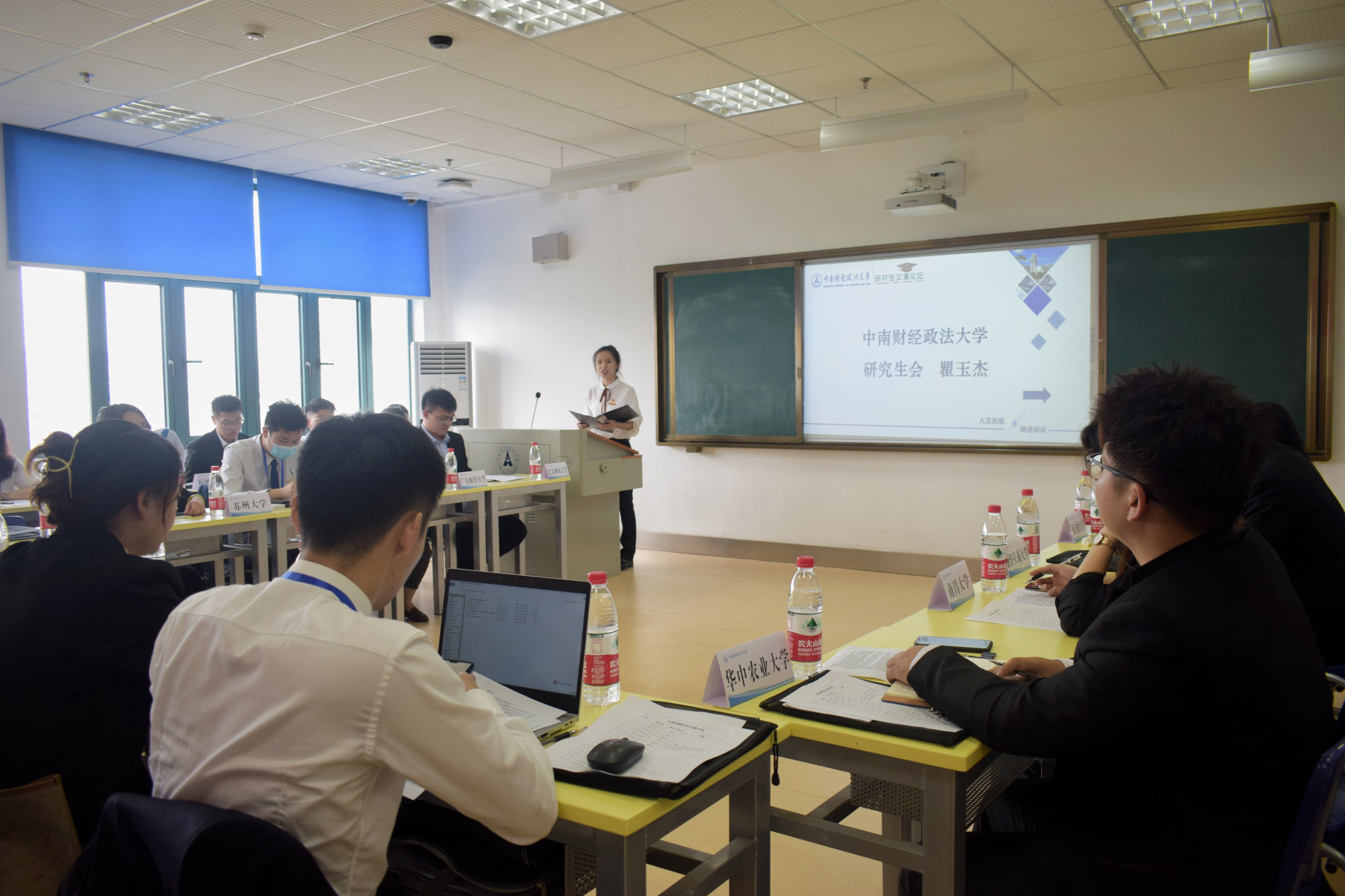 接着,华东政法大学研究生会执行主席潘敦峡介绍了华东政法大学研究生会的特色工作。他指出,华东政法大学研究生会始终坚持思想引领与理论学习,组织各学院主席团参与学习习近平新时代中国特色社会主义思想,不断学习马克思书刊,弘扬爱国精神,并深化研究生会改革,不断精简机构;华中师范大学研究生会代表邹照斌从组织架构、特色活动等方面对华中师范大学研究生会的工作进行了简要的介绍。