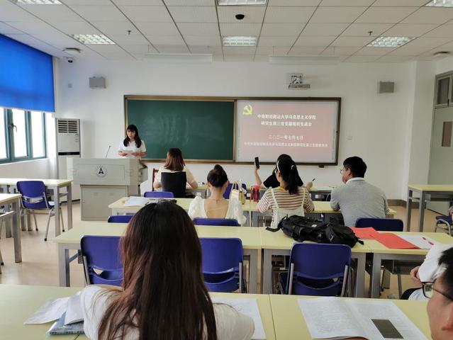 (通讯员 王冰姿)7月7日下午,中南财经政法大学党史学习教育博士生宣讲团成员易欢欢在文澴楼518为马克思主义学院研究生第三党支部全体党员讲党课,主题为“董必武与红安精神”。