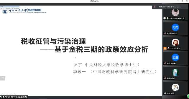 分论坛三以税收与企业行为为主题。中南财经政法大学张春雨博士、中央财经大学邵琪博士、中南财经政法大学王希瑞博士、中国人民大学陈怡心博士分别进行了相关主题论文的汇报。倪娟老师与其他学者进行了深入点评。