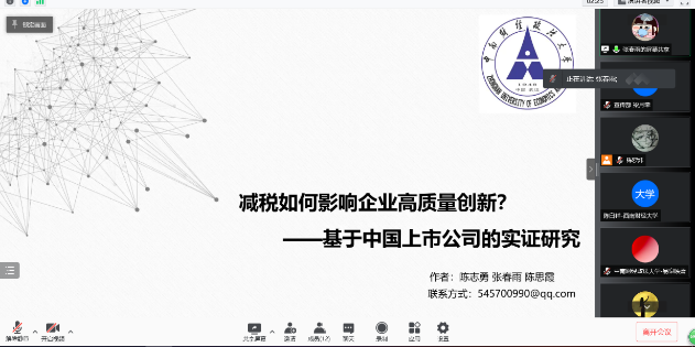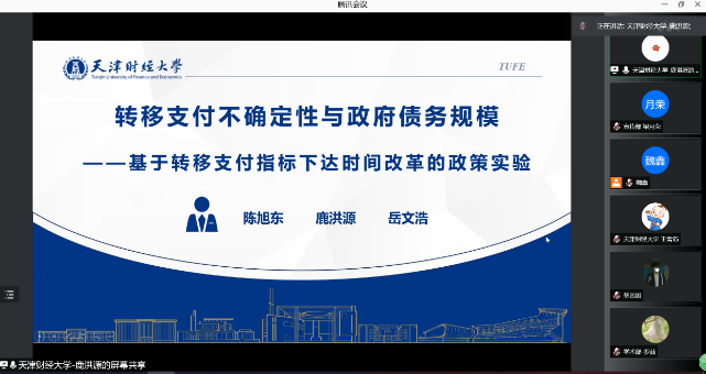 (通讯员 程明梅 许昕 梁月荣 金雨静 郑春序)2021年11月20日上午9点,中南财经政法大学第十二届研究生学术节之第十届全国财政学/公共经济博士生学术论坛于文泉楼北403成功举办,旨在为财政学/公共经济学科搭建学术交流平台,促进学科发展与创新。本次会议采取线上线下相结合的模式,并利用网络视频进行现场直播。来自清华大学、中国人民大学、武汉大学、华中科技大学、上海财经大学、中央财经大学、中南财经政法大学等高校的优秀博士生受邀参加线上会议。会议开幕式由财政税务学院副院长薛钢教授主持。