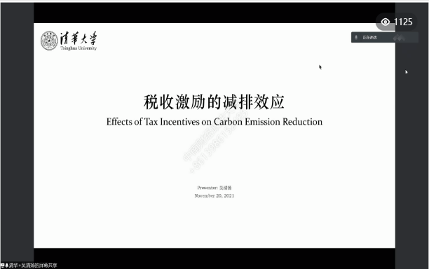 随后,清华大学吴清扬博士带来了题为《税收激励的减排效应》的论文分享。论文通过DID实证分析得到如下结论:税收激励政策削减了地区的碳排放量强度、消除了产业调整的制度性税收障碍、加快企业淘汰传统机器设备,对传统能源消费形成有效抑制。随后,中南财经政法大学财政税务学院赵颖副教授从分析逻辑、数据处理、实证策略与机制分析四个方面对论文提出了建议。