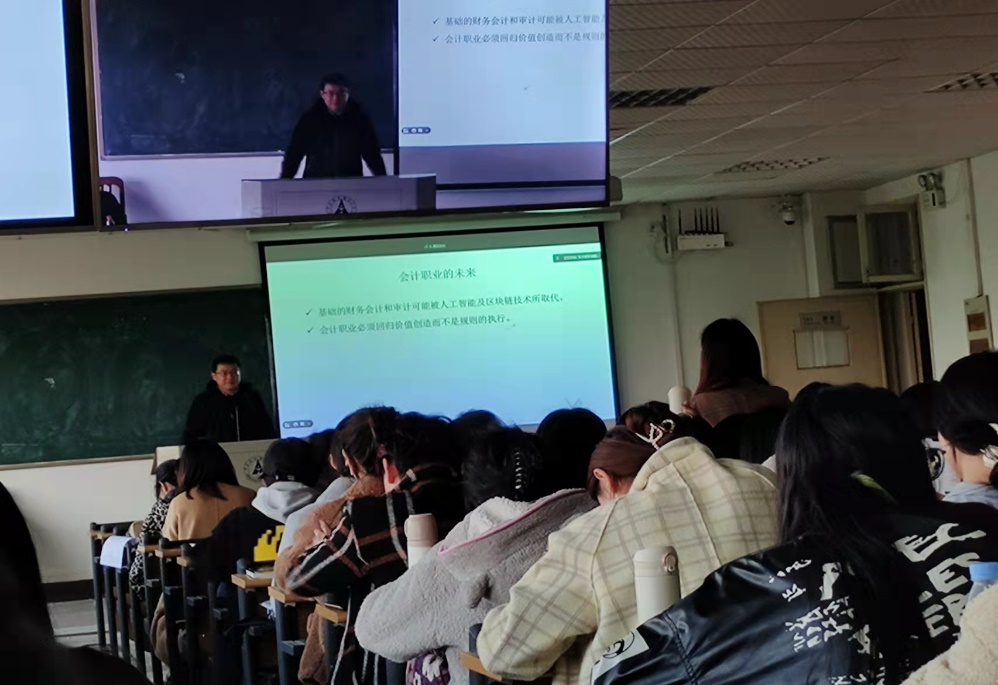 之后,宋丽梦副教授带领大家回顾了会计行业的历史,简述了几千年来会计行业在世界各国,尤其是文明古国中国的发展。最后,老师带领大家探讨了会计行业的未来发展。他认为基础的财务会计和可靠性审计可能被人工智能及区块链技术所取代,会计职业必须回归价值创造而不是规则的执行。